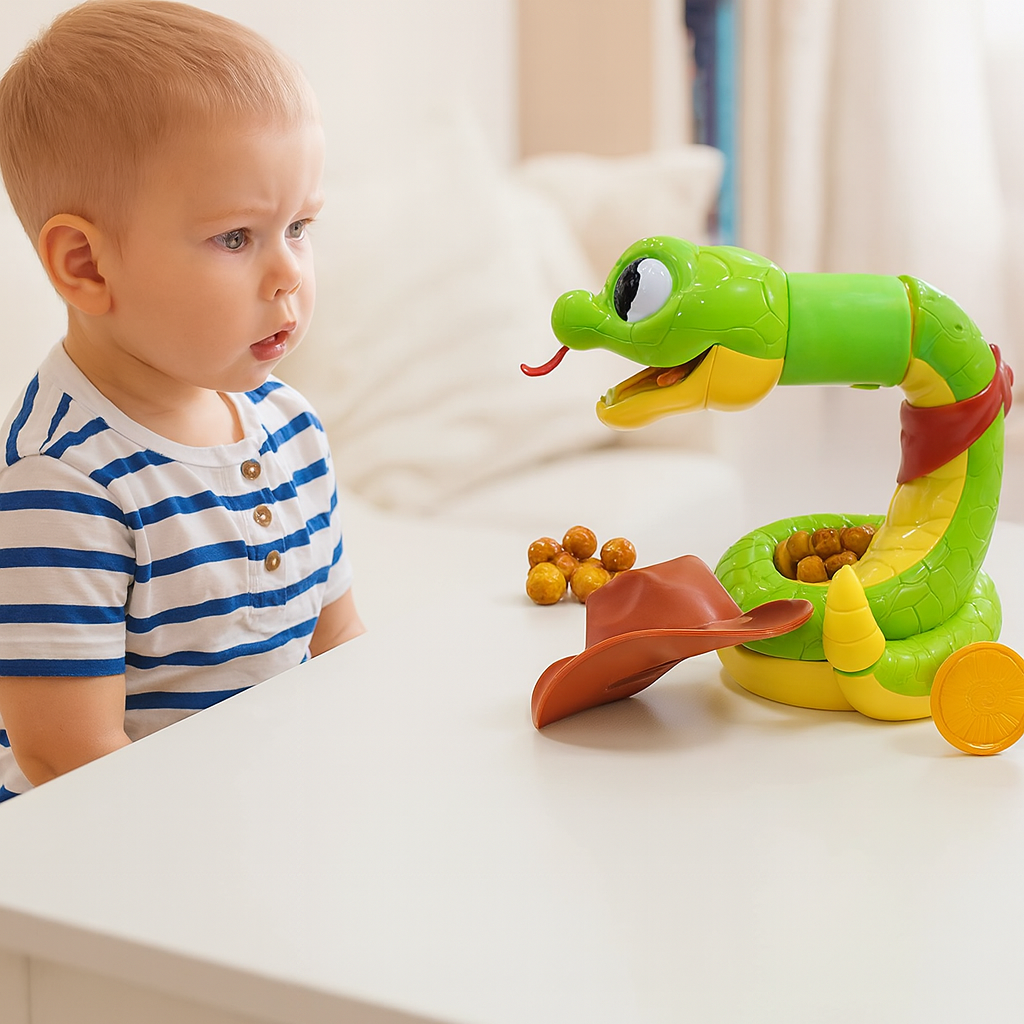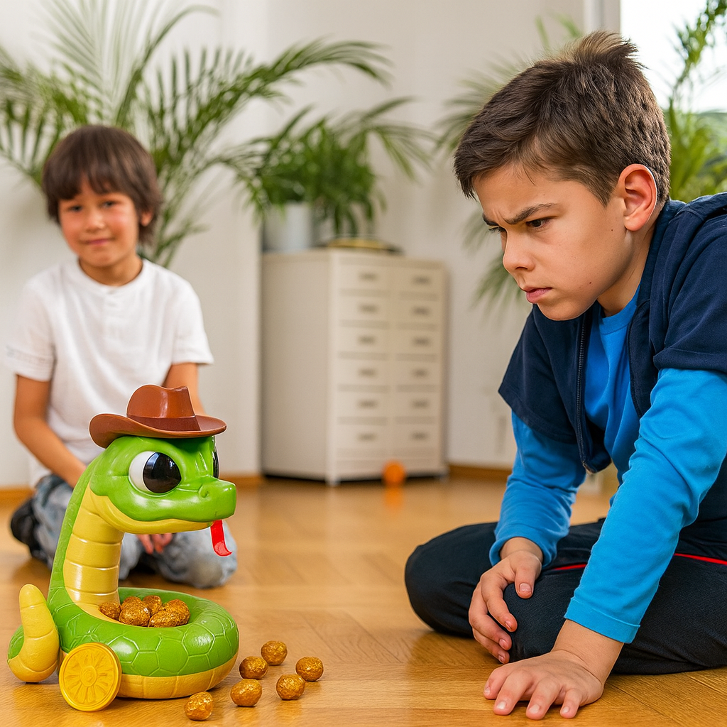 Barn älskar den oförutsägbara spänningen: precis när de sträcker sig efter den gyllene skatten… SMÄLL! Skallerormen slår till! Varje spel är fyllt med spänning, skratt och roliga reaktioner som gör leken oförglömlig.